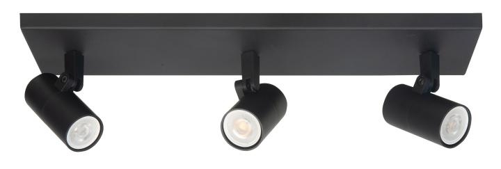 De spotverlichting Piccolo met 3-lichts spots. Het zwarte armatuur is strak en minimalistisch, waardoor de plafondlamp bij elk interieurstijl past.