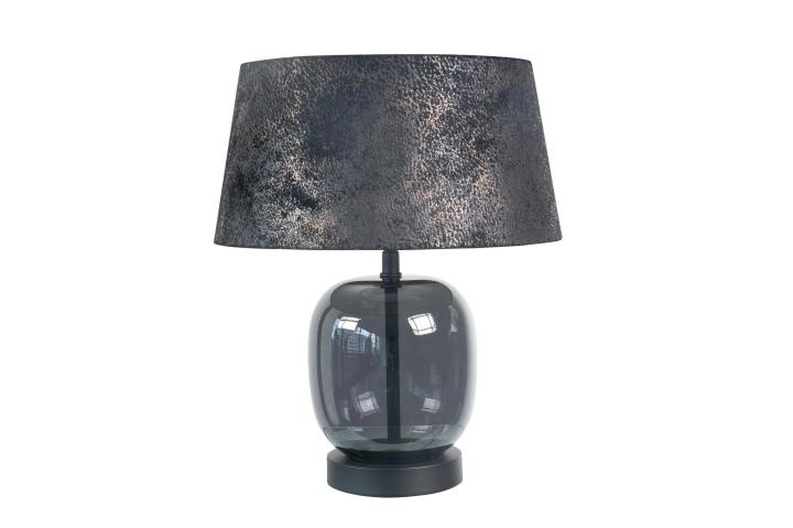 Een nieuwe toevoeging aan de Bellini serie! Het glazen armatuur geeft een moderne twist aan de tafellamp met een chique zwart stoffen lampenkap (afmeting 30-25-15 cm).