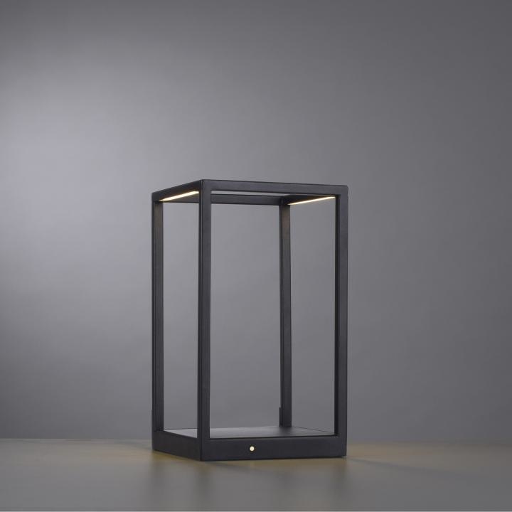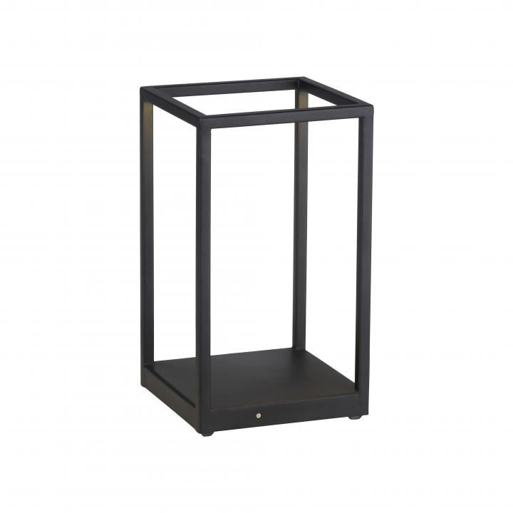 De lamp is gemaakt van metaal met een zwarte coating. De lamp is 26 cm hoog en 15 cm bij 15 cm breed.