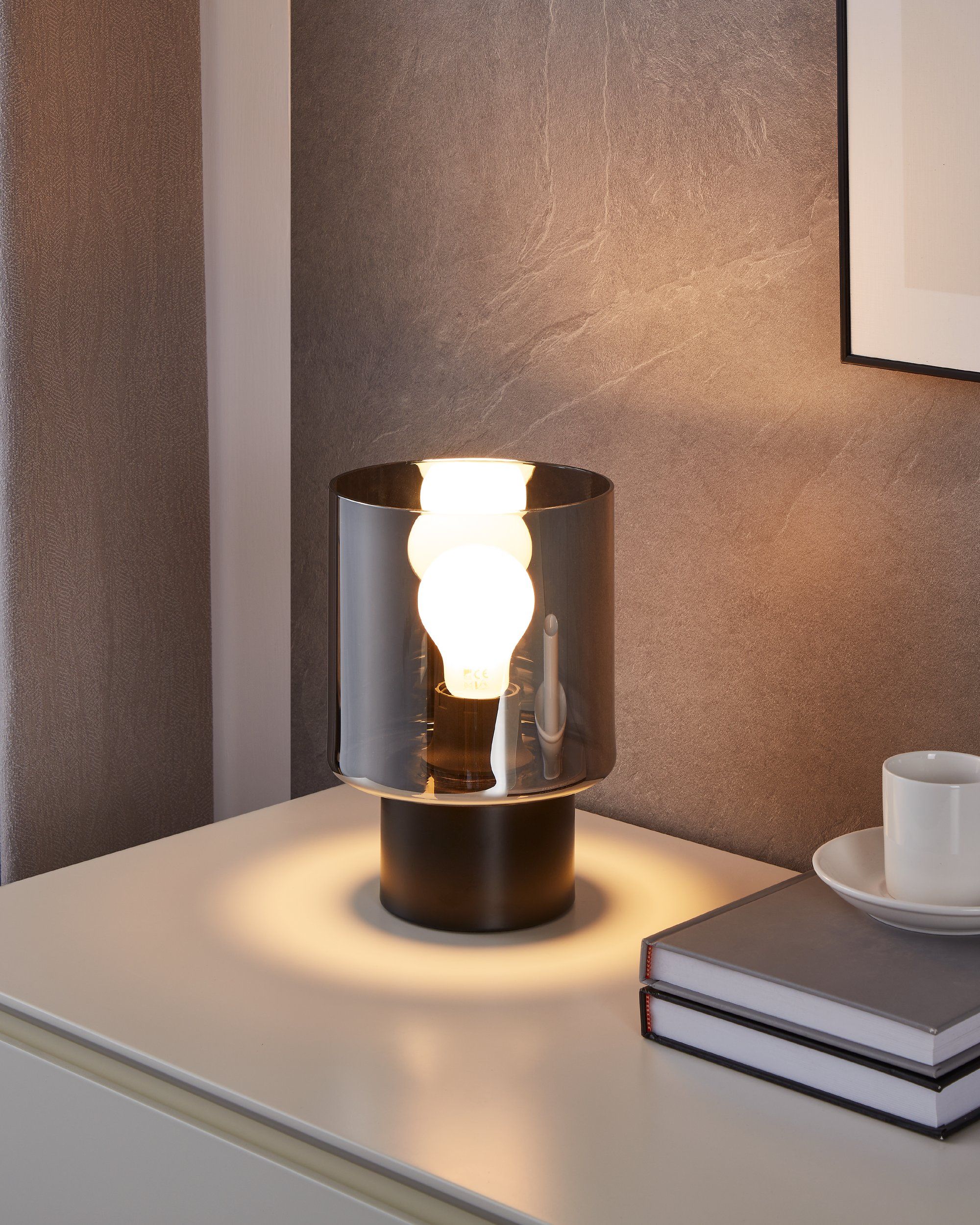 Tafellamp Gorosiba Mat Zwart met smoke glas