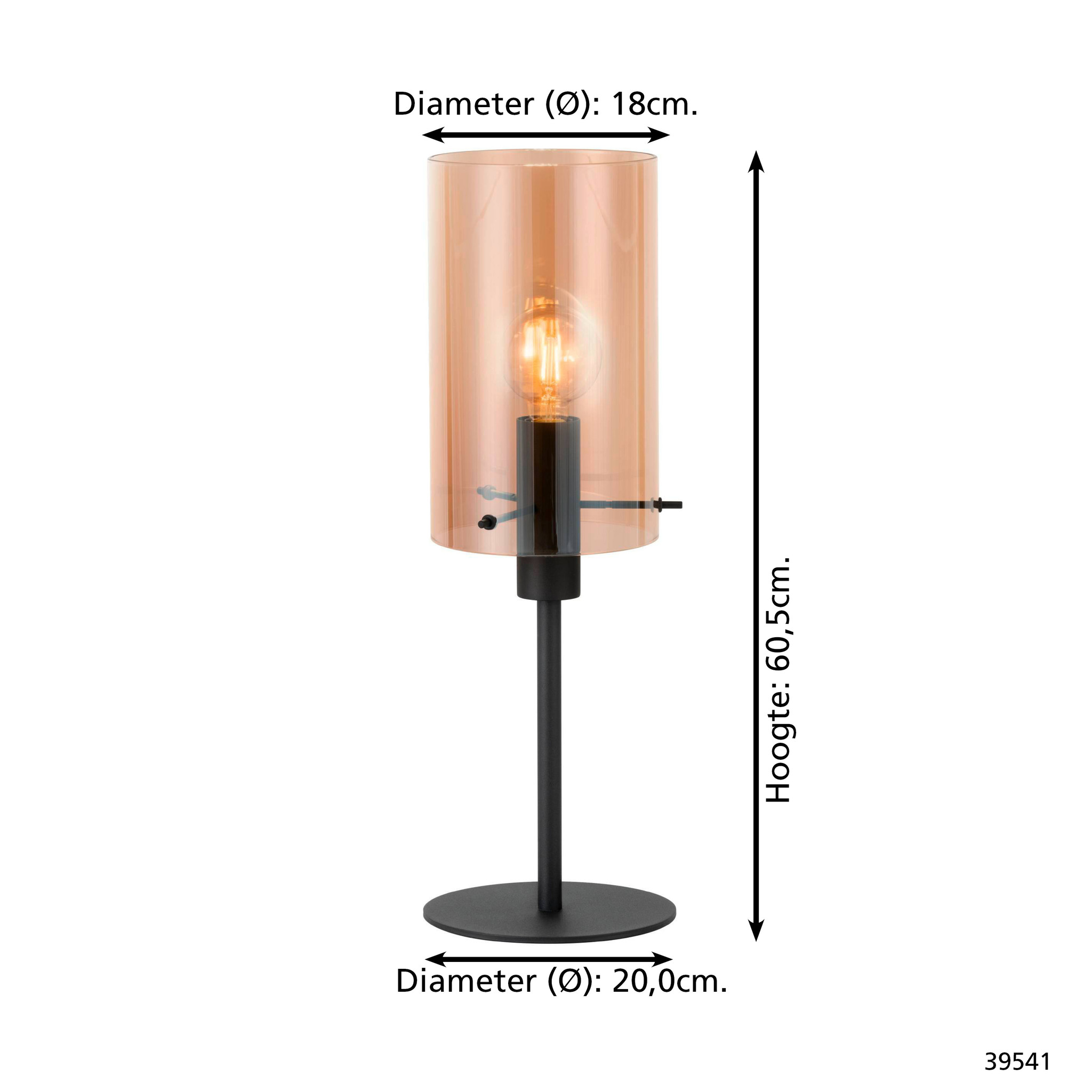 De tafellamp Polverara van Eglo heeft een zwarte stalen voet en amberkleurig glas. Het amberkleurige glas geeft de lamp een chique en warme look. Zowel de voet van de lamp als het glas heeft een ronde vorm, dit zorgt voor eenheid en geeft de lamp een zachte uitstraling. De hoogte van de lamp is 60,5 cm, de voet heeft een diameter van 20 cm en het glas heeft een diameter van 18 cm. De tafellamp heeft een E27-fitting en wordt geleverd exclusief lichtbron.