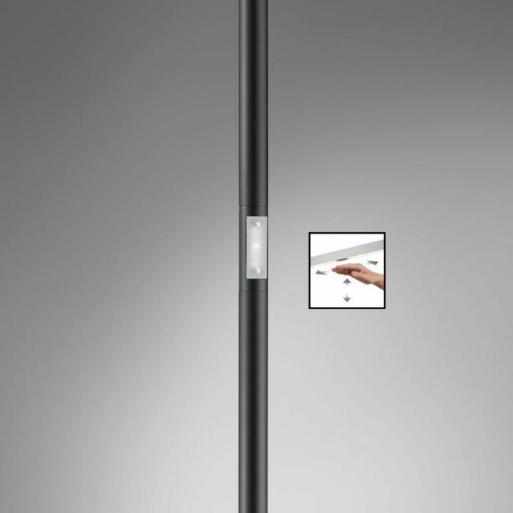 De lamp is voorzien van een memory sensordimmer voor traploos dimmen en handmatig aan- en uitschakelen. Een eenvoudig handgebaar volstaat om de lamp te bedienen. Als de lamp uit staat ziet u als indicatie een zwak lichtje branden op de plek van de sensor. Door een veegbeweging te maken een aantal centimeter boven de sensor is de lamp aan en uit te schakelen. Als de lamp aan staat, kunt u uw hand stil houden boven de sensor om de helderheid van de lamp aan te passen.