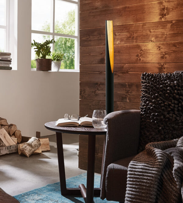 Deze decoratieve vloerlamp komt uit de Barbotto serie van Eglo.
