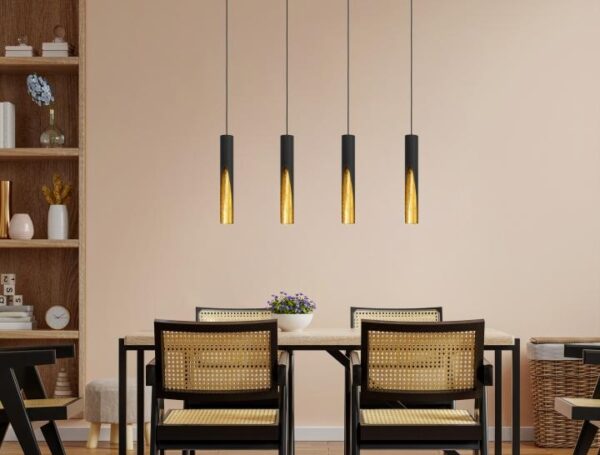 De vloerlamp is gemaakt van metaal en uitgevoerd in het zwart/goud. De vloerlamp heeft een GU10 lichtbron van 5W (3000K, 400Lm). Deze lichtbron is niet dimbaar.
