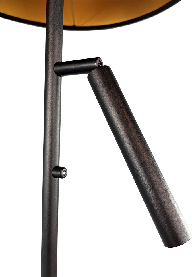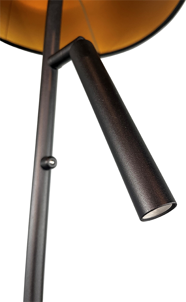 De lamp kan mooi neergezet worden naast de bank, fauteuil of bureau. Naast het sfeerlicht van de kap heeft de lamp een buigbare leeslampje. Hiermee kunt u heerlijk uw favoriete boek of de krant lezen. De vloerlamp Flute is ook te verkrijgen met een bronzen kap en gouden leeslamp.