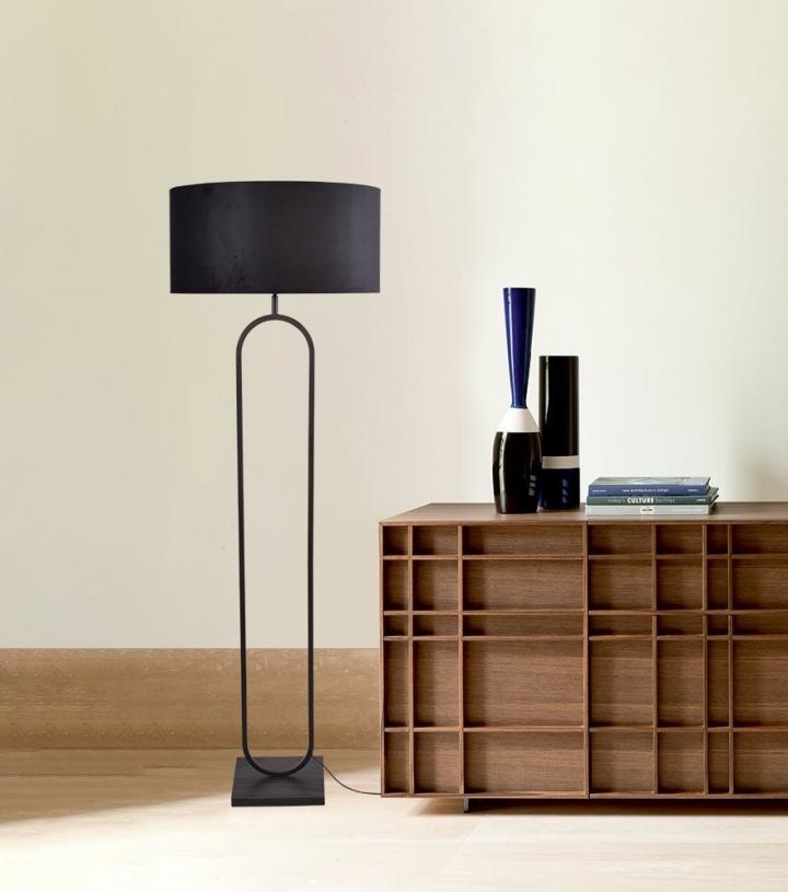 Vloerlamp Rico mat zwart ovaal h.162cm met zwarte kap