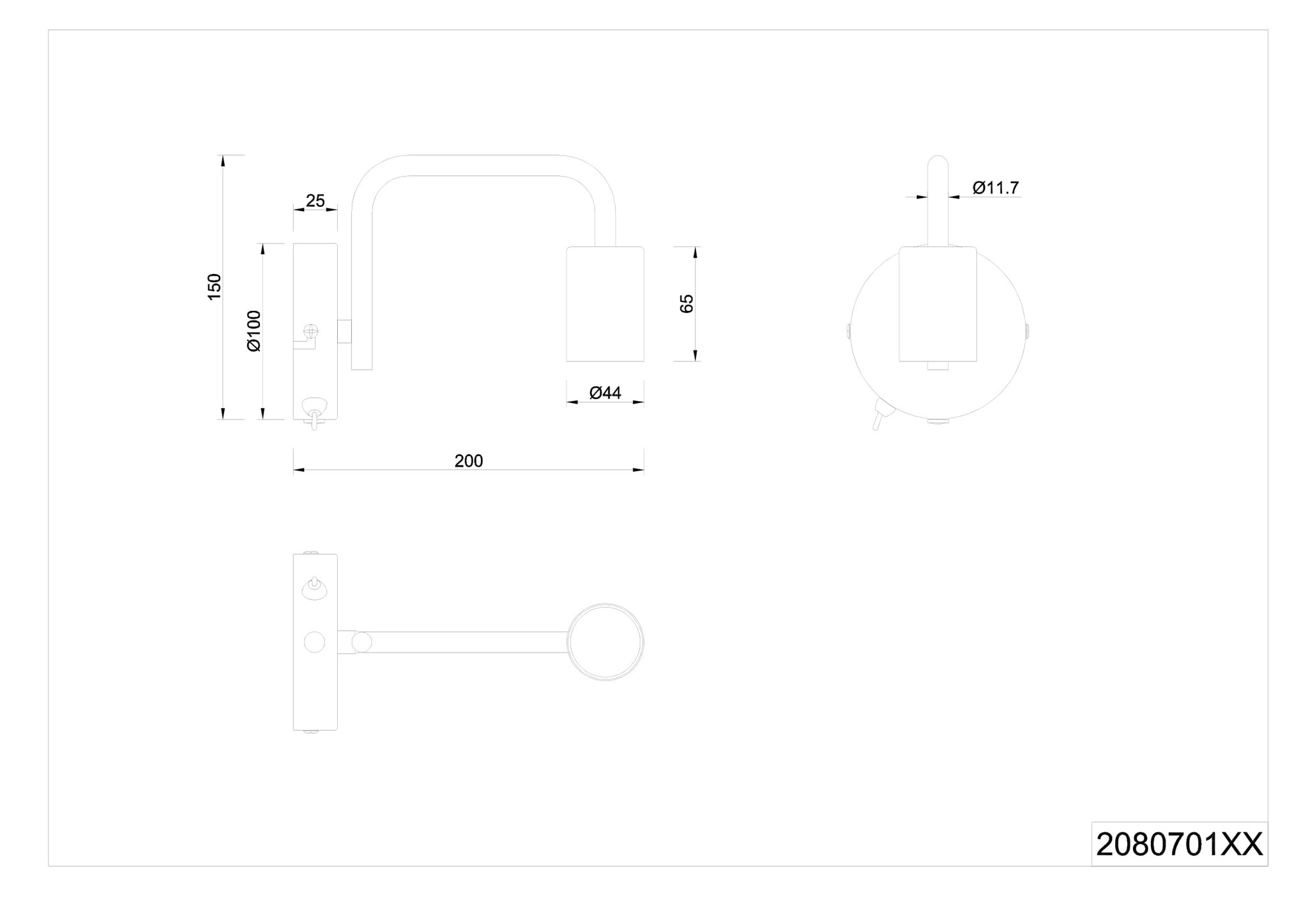De lamp komt 20cm van de wand af en heeft een hoogte van 15cm. De wand/montageplaat heeft een diameter van 10cm. Door de open structuur van de lamp is deze zeer geschikt voor gebruik met een mooie lichtbron.