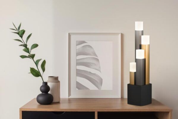 De Estanterios is een opvallende wandlamp met een uniek ontwerp. Deze lamp bestaat uit twee staven die up-down verlichting hebben. Deze lampen hebben een lengte van 13 cm, een breedte van 6,5 cm en een hoogte van 31 cm.