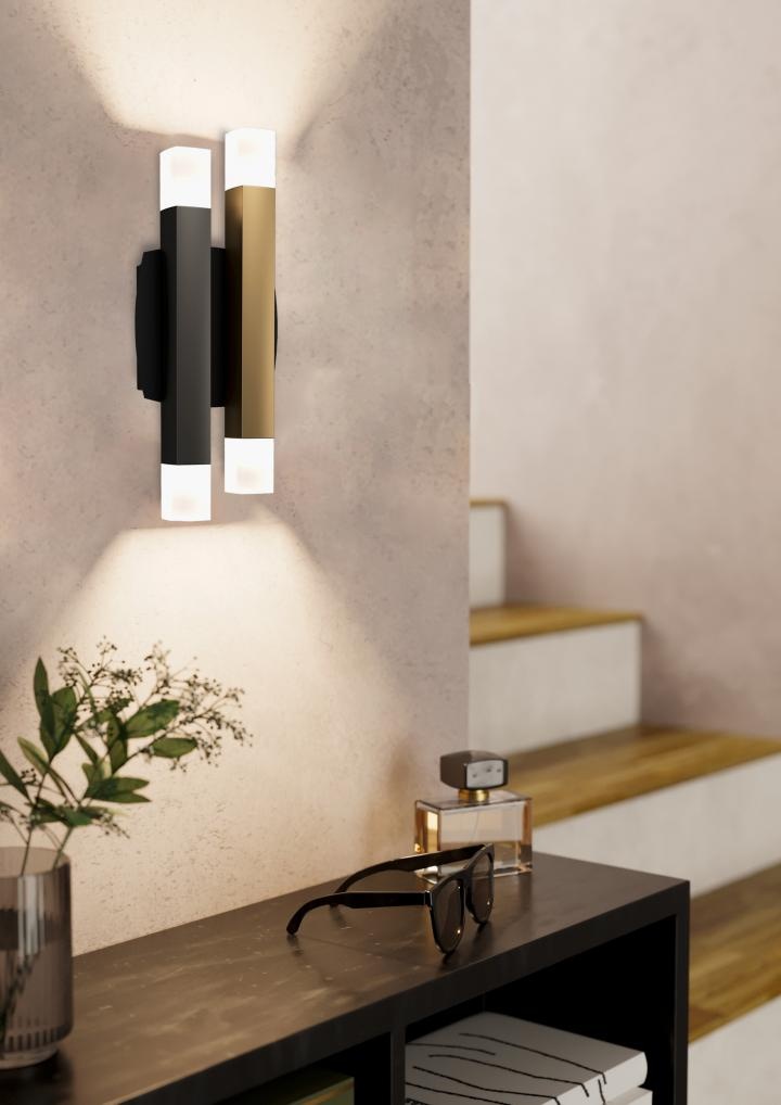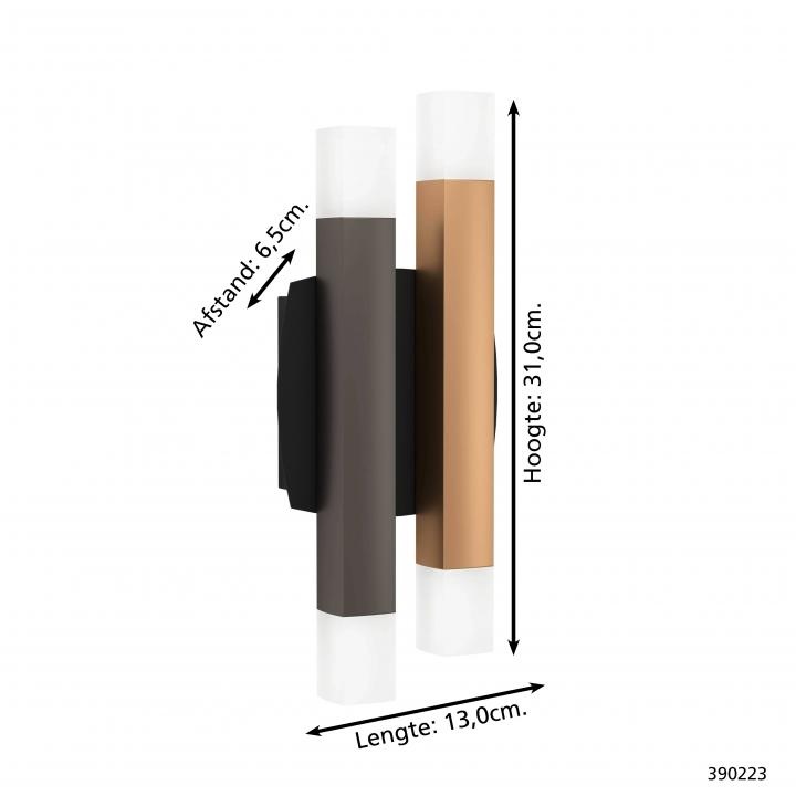 De Estanterios is een opvallende wandlamp met een uniek ontwerp. Deze lamp bestaat uit twee staven die up-down verlichting hebben. Deze lampen hebben een lengte van 13 cm, een breedte van 6,5 cm en een hoogte van 31 cm. Een functioneel en decoratief stuk dat jouw interieur een vleugje magie geeft. De wandlamp Estanterios wordt geleverd inclusief 4 LED-lampen van elk 3,3 Watt. Met deze samenstelling bereikt de lamp een indrukwekkende helderheid van 13600 lumen. De warme kleurtemperatuur van 3000 Kelvin zorgt voor een aangename en gezellige verlichting. De wandlamp is middels een externe dimmer (exclusief) te dimmen.